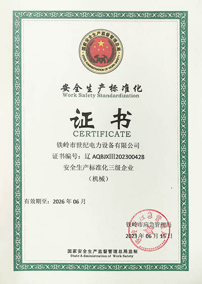 鐵嶺市世紀電力設備有限公司是集科研開發(fā)、生產(chǎn)制造、用戶服務于一體的國家高新技術企業(yè),始建于1999年,位于鐵嶺經(jīng)濟開發(fā)區(qū),占地面積5萬余平方米,建筑面積2萬余平方米。主要從事國家電網(wǎng)配套戶外高低壓隔離開關、電力電纜、變壓器成套裝置、高低壓開關柜、箱式變電站、絕緣子等產(chǎn)品的研發(fā)、生產(chǎn)和銷售。公司現(xiàn)有國家發(fā)明專利6項、實用新型專利9項,公司通過了ISO9001國際質(zhì)量管理體系認證、ISO14001環(huán)境管理體系認證和ISO 45001職業(yè)健康安全體系認證。